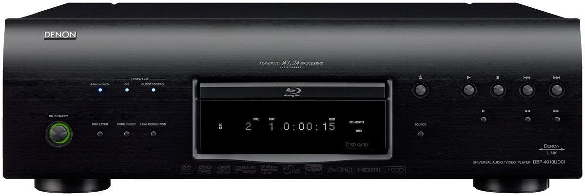 O Disc Player Universal DBP-4010UDCI da Denon permite usufruir de áudio e vídeo de alta qualidade com suas coleções de CDs e Vídeos nos formatos Blu-ray, DVD-Video, DVD-Audio, Super Audio CD e music CD, Kodak e Fuji picture disc.